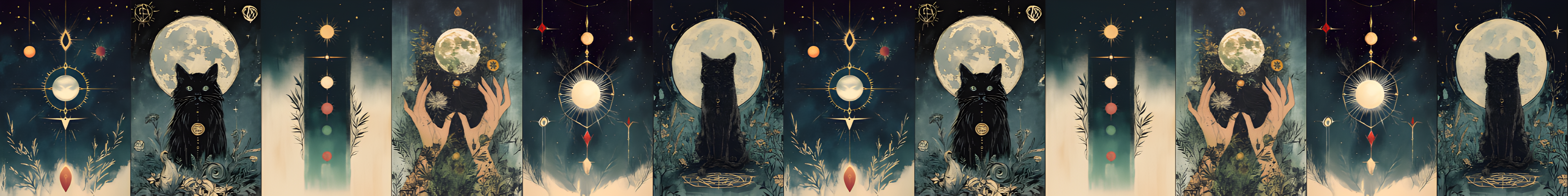 Un chat veille, paisible, sous une lune silencieuse. Son regard traverse, écoute, apaise. Cette scène devient un poster mystique, capturant un instant de calme attentif. Une présence douce, presque magique, pour celles et ceux qui aiment habiter l’espace entre beauté tranquille et force intuitive.